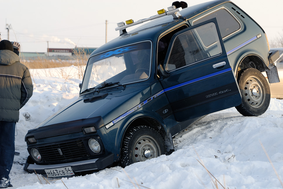 Шибко умная "нива" пыталась объехать заграждения на въезде